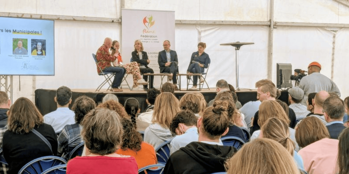 Ensuite s’est tenue la table-ronde « En avant vers les Municipales ! » avec Thierry SIMON, Maire de Lacapelle Cabanac, Danielle DAMBACH, Présidente, Emmanuel RIVIERE, Directeur de l’Agence du Climat sur l’Eurométropole de Strasbourg, Thierry BRUYERE-ISNARD, Président et Claire HURTAUX, Directrice de l’ALEC de l’Ardèche 07.